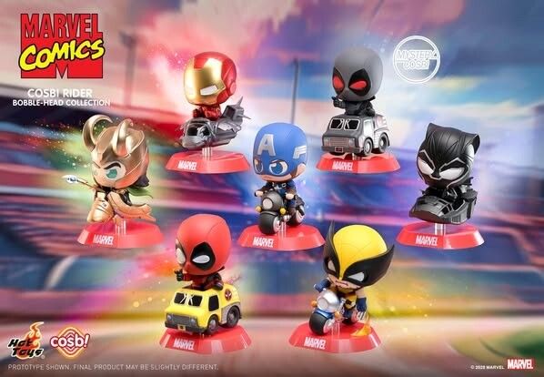 - В серии представлены 7 популярных персонажа вселенной Marvel в формате Cosbi Rider и 1 из секретный вариант!