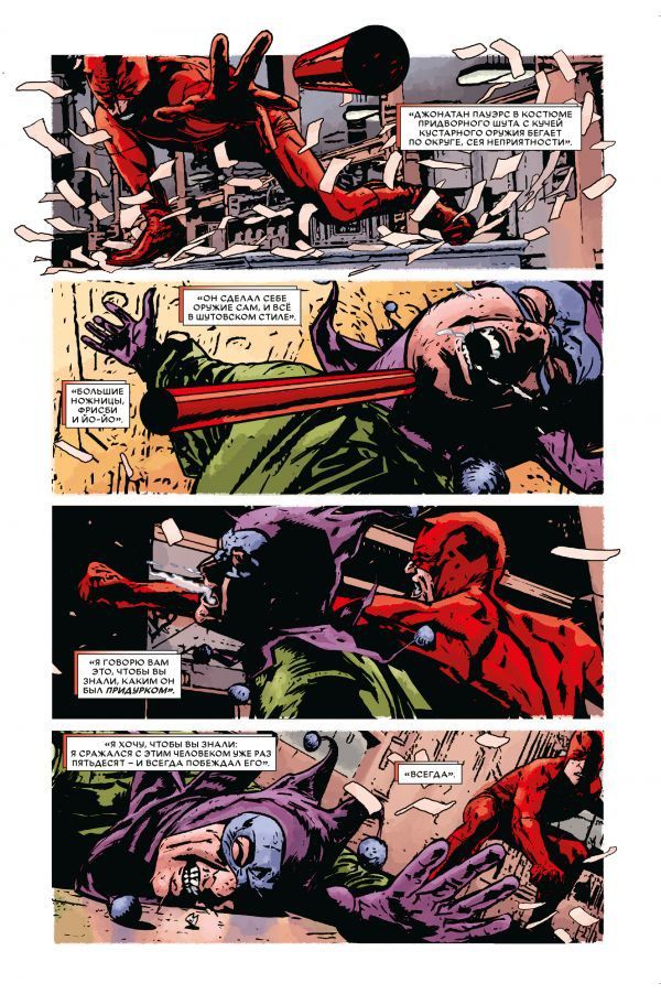 Перед вами последняя книга легендарной серии, надолго определившей будущее Сорвиголовы. Брайан Майкл Бендис и Алекс Малеев великолепно использовали множество персонажей вселенной Marvel и выстроили цепь событий, которая привела Мэтта Мёрдока к неизбежной развязке! Как долго Дьявол Адской кухни сможет хранить свой секрет и отбиваться от журналистов? Одна публикация в СМИ чуть не разрушила жизнь успешного адвоката, но что он будет делать, когда появится второе разоблачение? А перед этим вы найдёте ответы на следующие вопросы: кто был Кингпином до Кингпина и какие у него были отношения с Сорвиголовой? Что случилось за время, что Мёрдок управлял преступным миром Адской кухни? Хватит ли сил у Человека без страха справиться с потусторонней угрозой, тесно связанной с древним кланом ниндзя? Но все это меркнет в сравнении с грандиозным финалом… ведь УИЛСОН ФИСК ВЕРНУЛСЯ! И он готов разрушить жизнь Мэтта Мёрдока! Лихо закрученный сюжет с неожиданной развязкой, безумно красивый рисунок, жестокие схватки, бесконечные ловушки и обманы, целая россыпь врагов и друзей Мэтта Мёрдока, готовых вступить в схватку за будущие Сорвиголовы, всё это ждёт вас на страницах заключительного тома одной из лучших серий о Дьяволе Адской кухни!