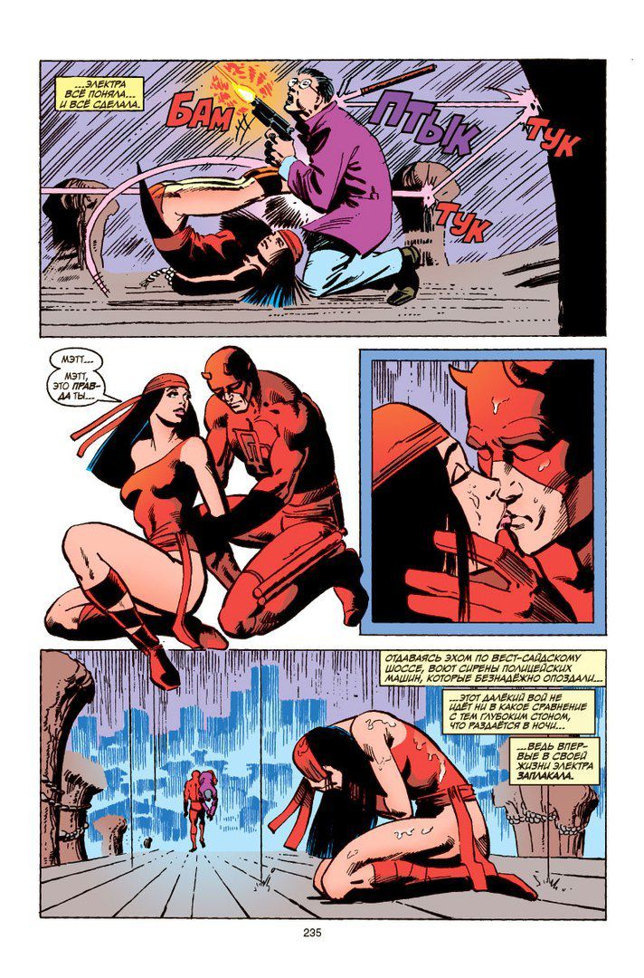 Кроме того, Фрэнк Миллер изменил не только Мэтта Мердока, но и других ключевых персонажей его вселенной, например, журналиста Бена Уриха, сумасшедшего киллера Меченного и главную головную боль слепого адвоката – преступного босса Кингпина. А также представил читателям таинственного учителя и наставника Сорвиголовы – Стика, смертоносный клан ниндзя «Рука», и очаровательную наемницу Электру. Электра в последствие стала одной из самых популярных и неоднозначных антигероинь Marvel Comics.