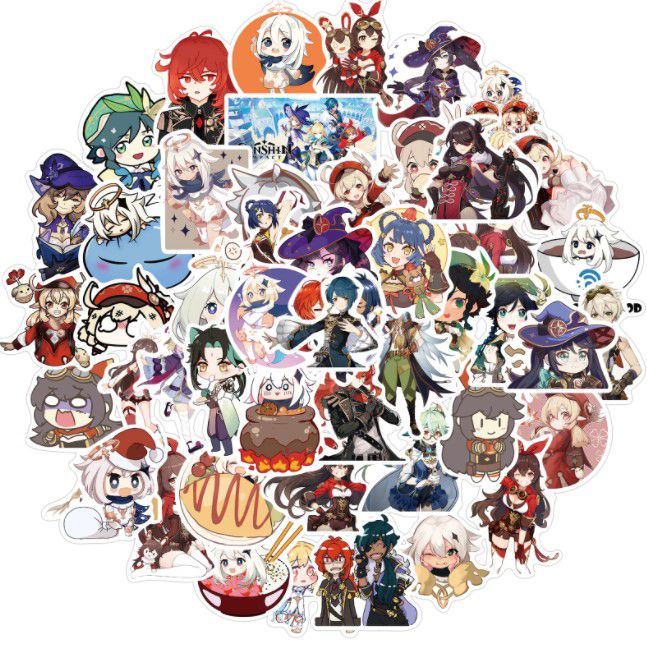 Комплект из 50 виниловых наклеек по самой популярной игре - Геншин Импакт