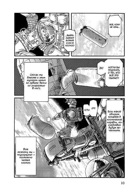Именно так все выглядит для разношерстной международной команды космических мусорщиков. Их работа скучная и однообразна, да еще и платят за нее сущие гроши. Очистка земной орбиты от старых списанных спутников точно должна стоить гораздо дороже! Но мечтатель Хатимаки, неразговорчивый Юрий, и заядлая курильщица Фи не жалуются.
