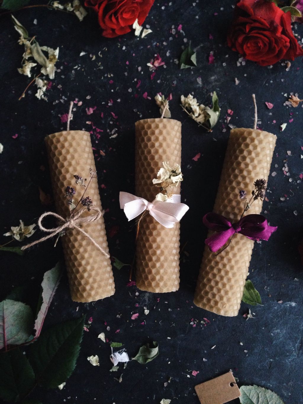 Медовые восковые свечи из натуральной вощины.