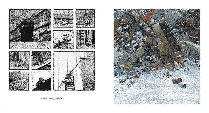 Каждый герой сказки «Теремок. Графическая история» получил свою предысторию, переиначенную на современный лад. Например, Ящерочка-шерошерочка – это иностранка, потерявшаяся в России, Лягушка-квакушка метет улицы, художник Белочка-попрыгушечка – бездомный погорелец, археолог Зайка оказывается на улице после ссоры с женой, Лиса Патрикеевна подрабатывает пением в электричках, Серый Волк профессиональный вор, а Михайло Потапыч зажиточный автолюбитель. Согласитесь, в детстве вы вряд ли могли себе представить такую разношерстную компанию под одной крышей.