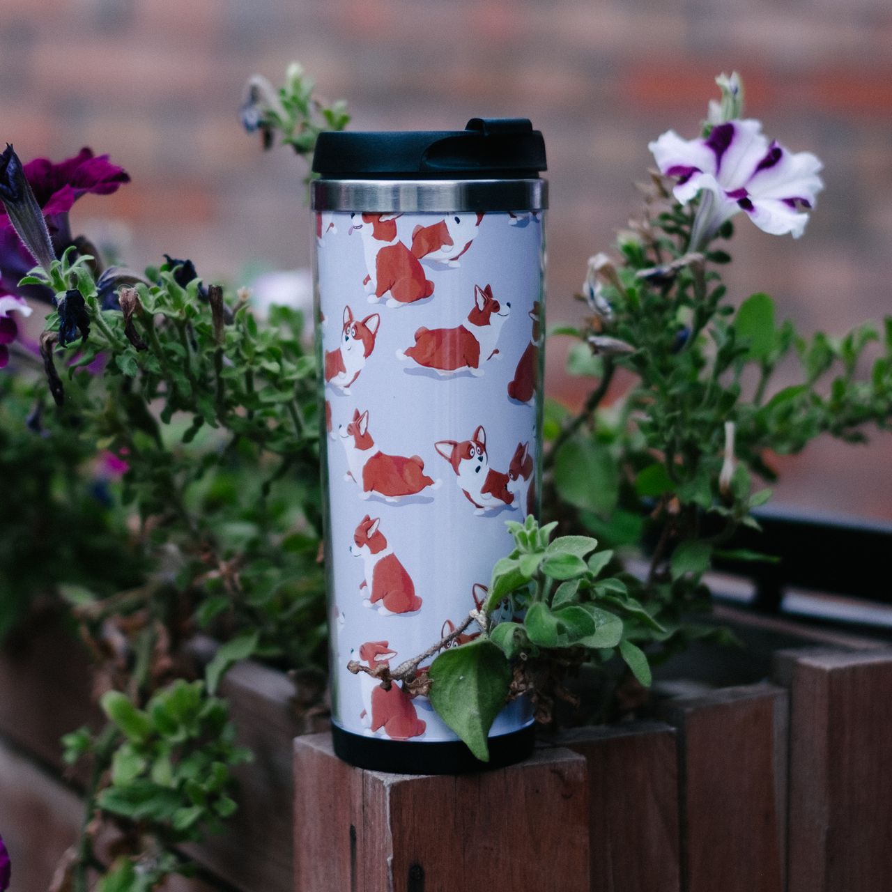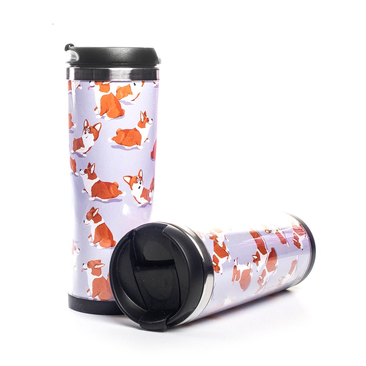 Термокружка с жизнерадостными корги! Кружка сохраняет тепло на протяжении 3-5 часов благодаря двойной стенке.