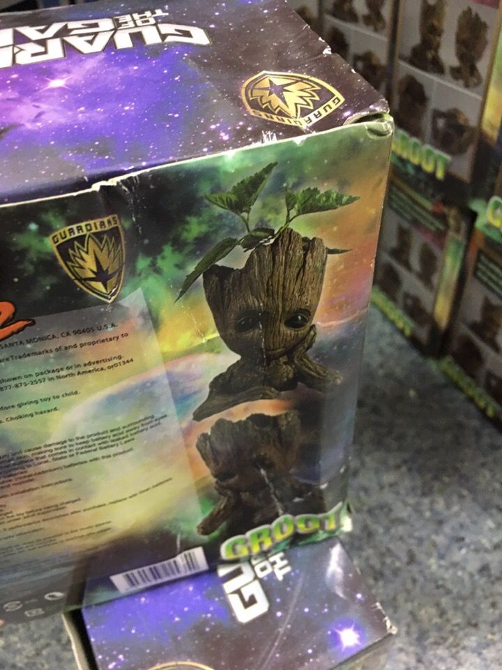 В киновселенной Марвел мы видели две версии Грута, и как утверждает режиссер Джеймс Ганн, даже ДВУХ РАЗНЫХ Грутов! Все они, так, или иначе, были представлены брелоками, статуэтками, различными фигурками, и вот теперь... цветочный горшок! Почему? А почему бы и нет? Мамин кактус рядом с вашим компьютером будет особенно надежно смотреться именно в голове самого разговорчивого представителя своей расы.