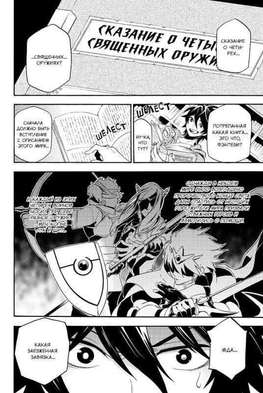 Иватани Наофуми - типичный отаку, которого нагло призывают в другой мир и просят спасти мир, попутно став одним из четырех героев, "Героем Щита". Недолго ломаясь, он все-таки решается пойти и спасти мир. И все бы ничего, если бы парня не ограбили на третий день, да еще и в изнасиловании обвинили... Ограбленный и униженный перед обществом, Наофуми решает найти обидчиков и задать им жару.