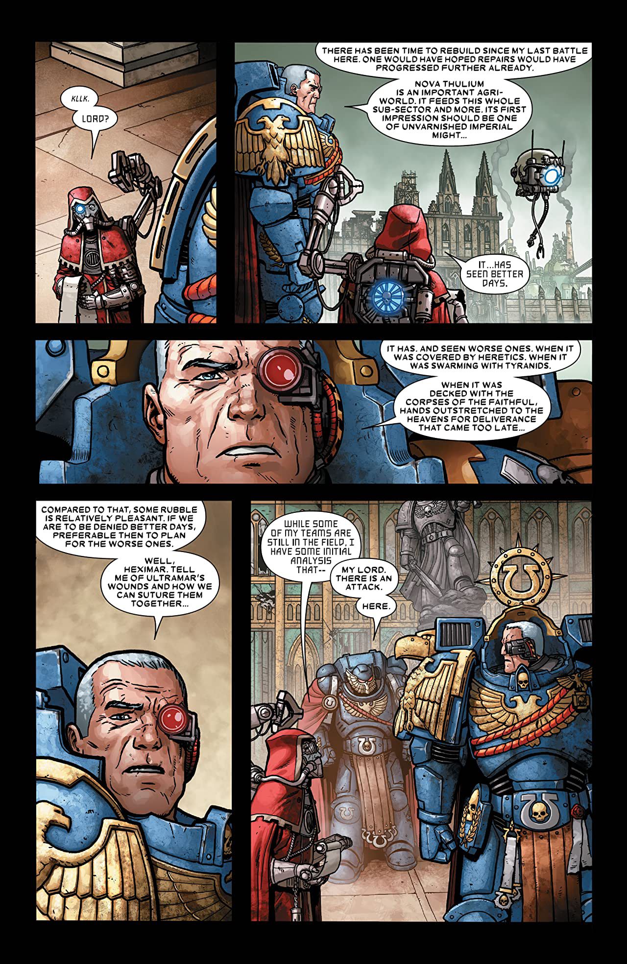 В мрачной тьме далекого будущего есть только война ... Сага Warhammer 40,000 выходит в Marvel Comics! Марнеус Калгар, легендарный магистр ордена Ультрамаринов, ведет своих элитных космических десантников в битву против величайших угроз человечеству в галактике, охваченной бесконечной войной