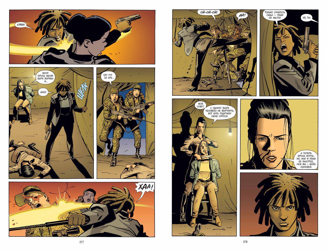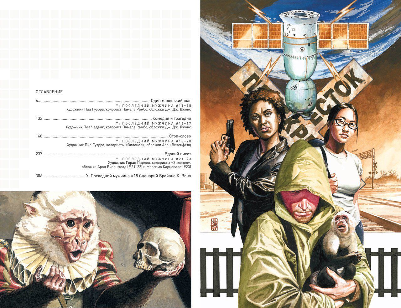 А самый важный для самого Йорика человек находится за 10 000 миль от него, и юноша готов на все, чтобы ее отыскать. Однако пускаясь в путь по миру, где остались одни женщины, парнишка и обезьянка обнаруживают, что за ними охотятся — с самыми разными целями.