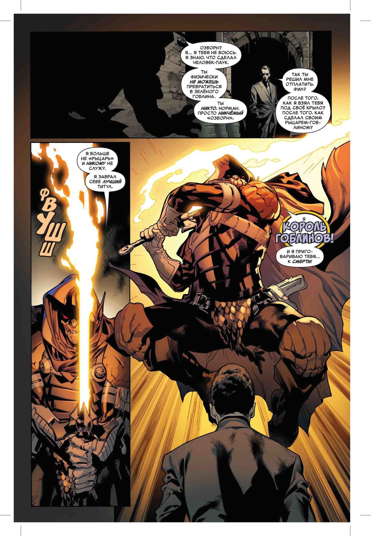 В новом комиксе Норман Осборн все же отыскал возможность вновь обрести свое альтер-эго, правда расплачиваться за это пришлось с самым сомнительным и жутким кредитором – великим и отвратительным Карнажем! Но это неважно, ведь теперь Осборн-старший стал еще сильнее, и окончательно слетел с катушек.