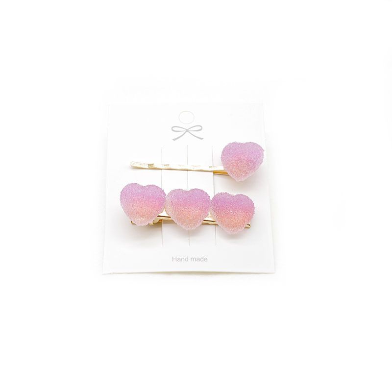Заколочки в виде мармеладок в сахаре! Сердечки выполнены из мягкого силикона, поэтому на ощупь как настоящий мармелад. В комплекте 2 заколки: невидимка и зажим "крокодильчик".