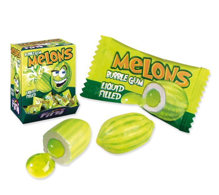 Жевательная резинка с жидкой начинкой и вкусом дыни!