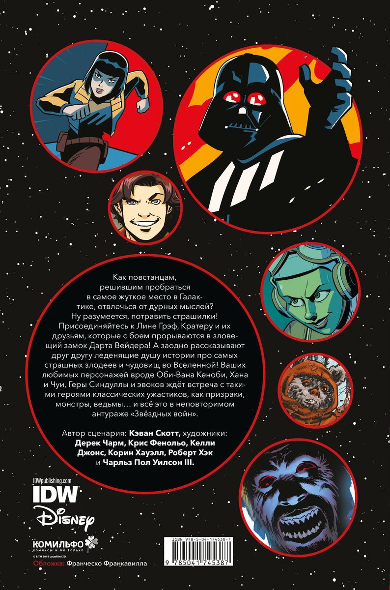 Как повстанцам, решившим пробраться в самое жуткое место в Галактике, отвлечься от дурных мыслей? Ну разумеется, потравить страшилки! Присоединяйтесь к Лине Грэф, Кратеру и их друзьям, которые с боем прорываются в зловещий замок Дарта Вейдера! А заодно рассказывают друг другу леденящие душу истории про самых страшных злодеев и чудовищ во Вселенной! Ваших любимых персонажей вроде Оби-Вана Кеноби, Хана и Чуи, Геры Синдуллы и эвоков ждёт встреча с такими героями классических ужастиков, как призраки, монстры, ведьмы… и всё это в неповторимом антураже «Звёздных войн».